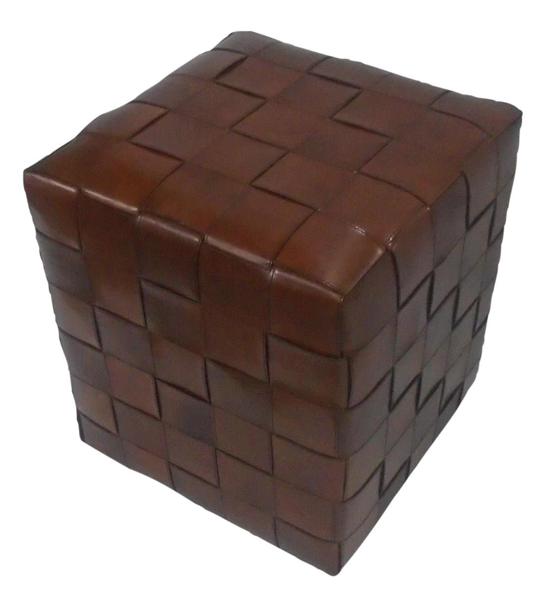 Leather Woven Pouf Ottoman Stool | Chairish
